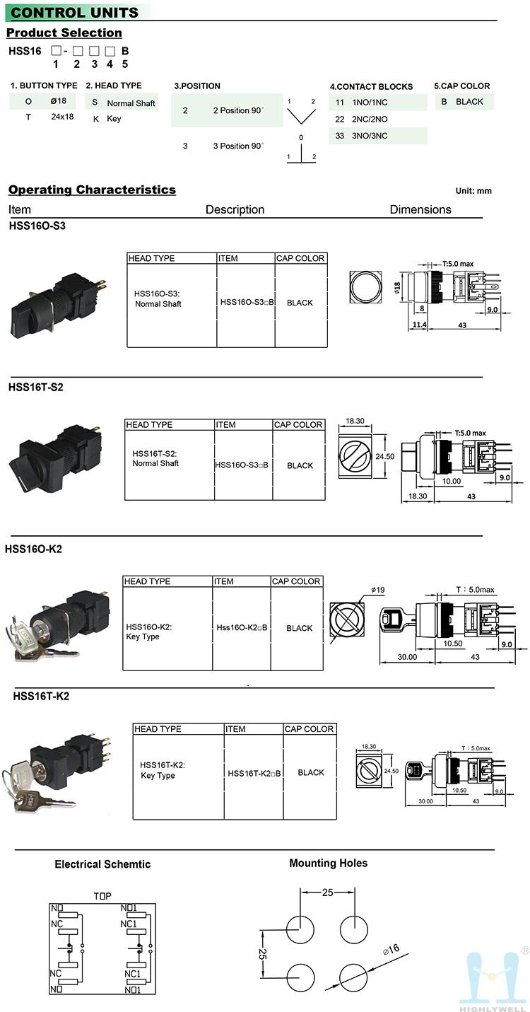 海立HIGHLY 16mm旋鈕開(kāi)關(guān) PDF 資料下載