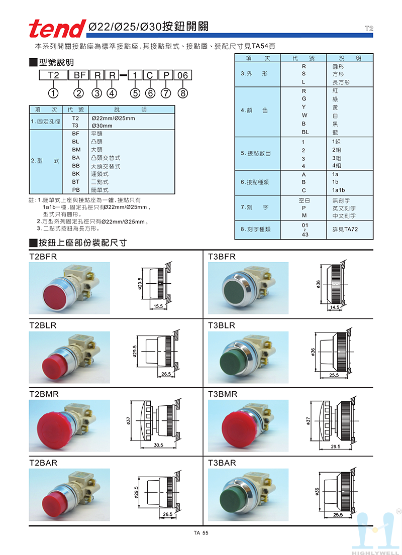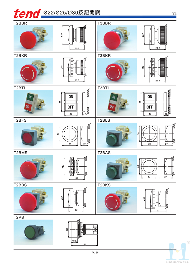 • 產(chǎn)品描述:天得 按鈕開關(guān) T2BKR