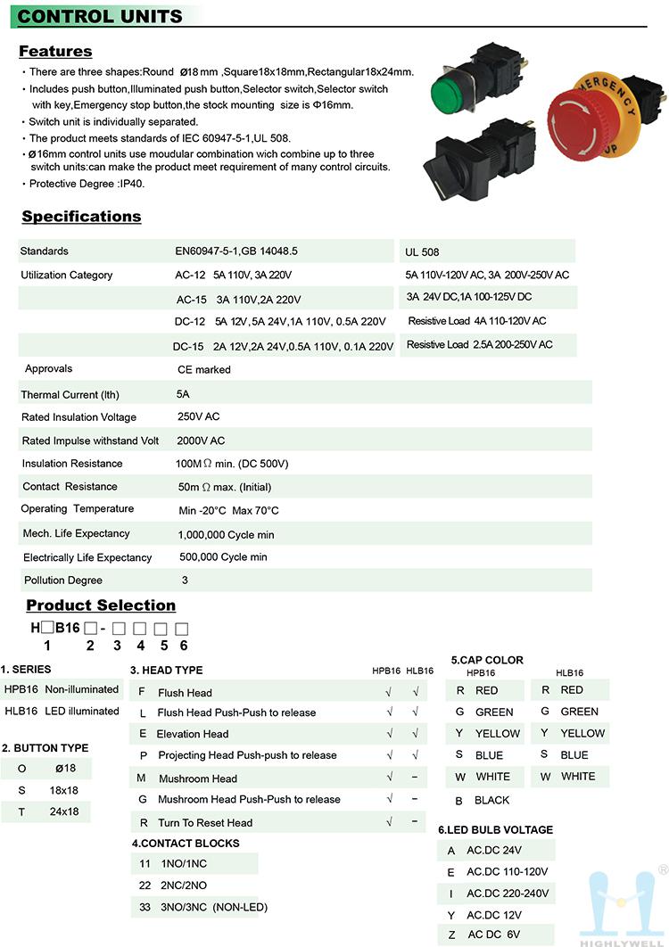 海立HIGHLY 16mm旋鈕開(kāi)關(guān) PDF 資料下載